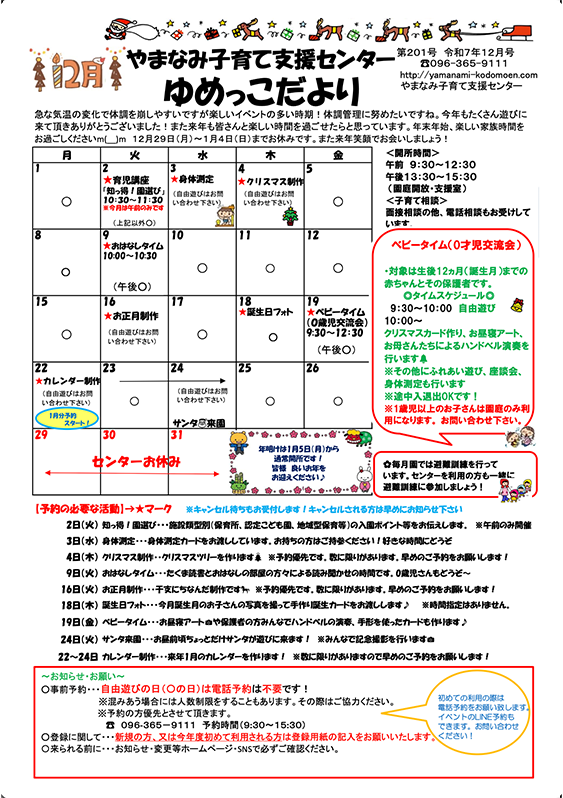 ぜひ遊びに来てくださいね♪★のマークは予約制です。