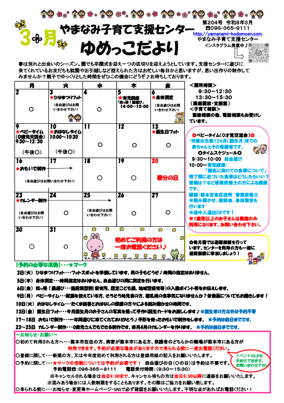 3月残りわすかの期間ですがやまなみ子育て支援センターに