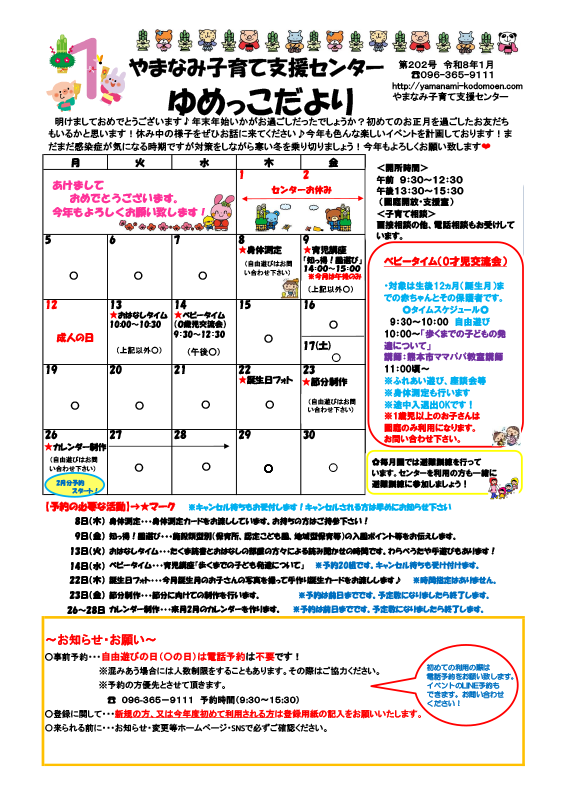 1月のイベント予約は…